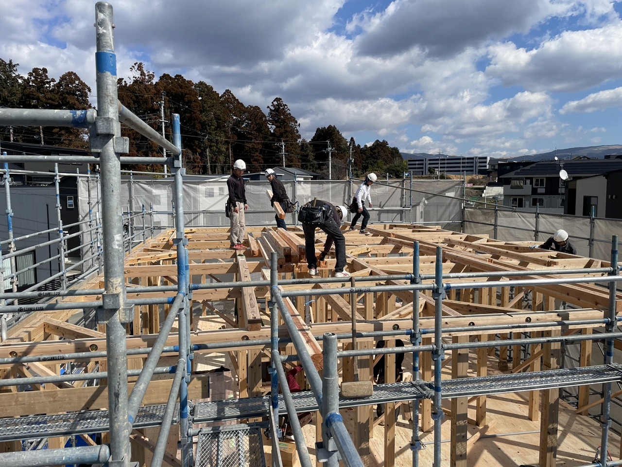 大津町にてPIT建築中!先日上棟した時の様子をご紹介致します。