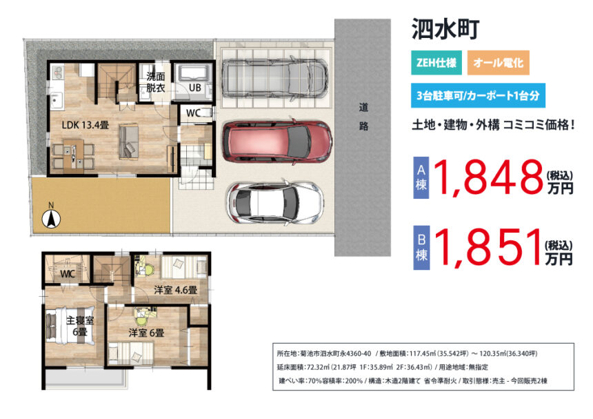 オール電化のZEH仕様!カーポートも付いて3台駐車可能な駐車場が嬉しい♪3LDKのお家が好評販売中です!